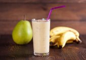 Апельсиновый сок, груша и банан. Можно добавить свежей мяты.