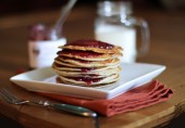 Легкие блины на миндальной и рисовой муке с арахисовым маслом и вашим любимым желе.