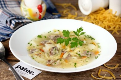 Суп с куриными желудками и яичной лапшой