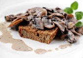 Чесночные тосты с грибным рагу