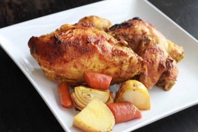Курица, маринованная индийскими специями и пожаренная в духовке с овощами. Хрустящая снаружи, мягкая и сочная изнутри, она понравится всей семье, от мала до велика!
