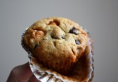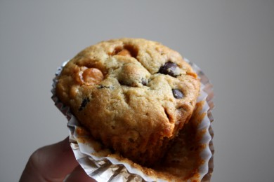 Прекрасный завтрак или десерт - кексы с шоколадными чипсами и ирисками.
