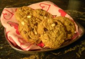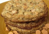 Овсяное печенье с шоколадными чипсами, ирисками и арахисовым маслом.
