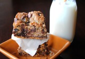 Вкуснейшее угощение - пирожные блонди с ирисками (или рубленой карамелью). Подавайте со стаканом холодного молока.