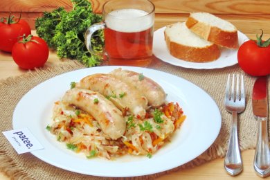 Капуста, тушенная с баварскими колбасками