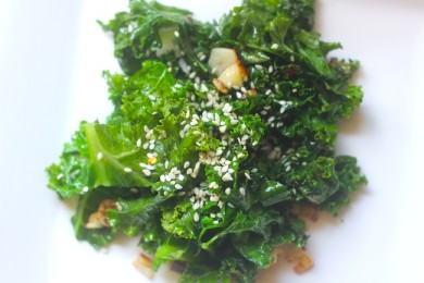 Консервированный нут, обжаренный в масле с капустой кале и чесночным порошком. Если любите острую пищу, можете добавить немного красного перца или острого соуса.