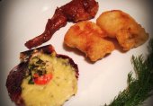 Ассорти из легушачьих лапок, гребешка и каракатиц.