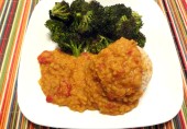 Сладкая подлива из тыквенного пюре с белой консервированной фасолью, арахисовым маслом, коричневым сахаром и специями.
