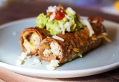 Мексиканская закуска из лепешек с начиной из куриного фарша с чеддером, запеченная в духовке. Такитос следует подавать горячими, посыпав мексиканским сыром кесо, с гуакамоле.