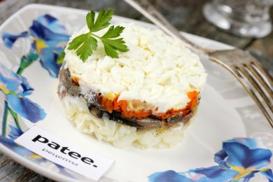 Готовим вкусный слоёный салат с килькой пряного посола, который станет отличной закуской для праздничного стола!