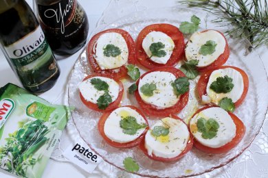 Всем известен классический итальянский салат капрезе. Сегодня я предлагаю вариант на случай отсутствия одного из его немногочисленных, и поэтому основных, компонентов - зеленого базилика.
