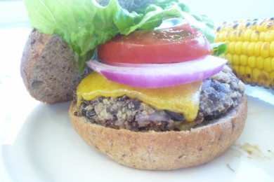 Необычный бутерброд с “котлеткой” из киноа и фасоли, с добавлением лука, томата и авокадо.