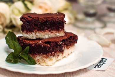 В этом рулете сочетаются нежнейший, мягкий, шоколадный бисквит и кокосовый крем. Бисквит для этого рулета готовится на основе сухого пудинга, без муки.