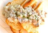 Это очень вкусная подливка из мясной колбаски для тостов. В ней всего-то 120Ккал в одной порции!
