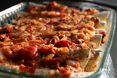 Очень легкий и вкусный рецепт энчилады с помидорами, куриным фаршем, фасолью, луком и чесноком.