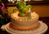 Торт из бисквитного теста с ванильным и миндальным экстрактами, смазанный сливочным кремом.