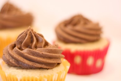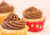 Ванильные мини-кексы на пахте, украшенные сливочно-ванильным кремом с шоколадным спредом.