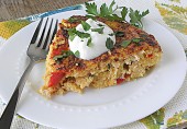 Итальянский омлет с куриным филе, киноа, консервированным перцем и миндальным молоком, запеченный в духовке.