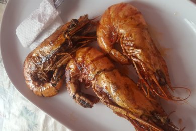 Ингредиенты на 4 порции (1 порция - 200 грамм креветок и 2 столовые ложки соуса):800 грамм больших очищенных креветок1/4 стакана свежего лимонного сока2 столовые ложки оливкового масла ( 1 ложка, чтобы смазать противень)3 зубчика измельченного чеснока1 чайная ложка натертой цедры лимона1/4 чайной ложки молотого красного перца2 столовые ложки нарезанной свежей петрушкиЭто блюдо очень вкусное и к тому же низкокалорийное.