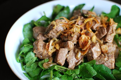 Говядина по-вьетнамски с водяным кресс-салатом.