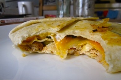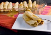 Кукурузные лепешки с начинкой из курицы, сыра, овощей и приправ, завернутые в пшеничные лепешки и обжаренные до хрустящей корочки.