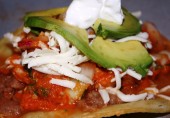Мексиканское блюдо - кукурузные лепешки с начинкой из курицы с луком, чесноком, сыром и авокадо.