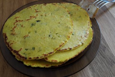 Предлагаю попробовать мексиканские кукурузные лепешки с зеленым луком и укропом. Честно признаться рецепт возник спонтанно.