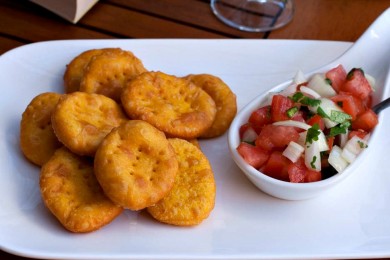 Оригинальное название этого блюда звучит так: Sopaipillas con Pebre y Pasadas. Так вот, Sopaipillas представляют собой жареные колечки из теста с добавлением тыквы (что-то подобное пончикам).