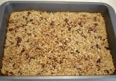 Миндаль, кешью и арахис, клюква и шоколад, залитые сладким сиропом и запеченные в духовке.