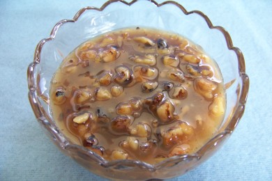 Сладкий сироп с коричневым сахаром, молоком, ванилином и рублеными грецкими орехами. Подавайте с ванильным, шоколадным, кофейным мороженым.