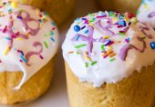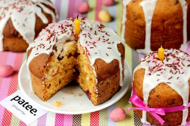 Какая Пасха без куличей? Попробуйте испечь пасхальные куличи с миндалем, цукатами и изюмом, покрытые глазурью.