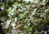 Голубцы, приготовленные по этому рецепту, получаются достаточно диетическими- в начинке присутствует куриное мясо, кускус и микс овощей, таких как зелёный горошек, стручковая фасоль, морковь, лук.