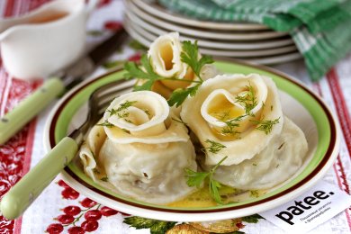 Ленивые пельмени в виде бутонов роз- вкусное, красивое, сытное и сочное блюдо домашней кухни. Такие пельмени не нужно делать маленькими, поэтому ювелирной работой сегодня заниматься мы не будем, а сделаем пельмени по три на порцию, т.