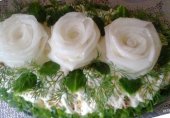 Ах, какая же это красота! Салат «Три белых розы» получается очень красивым, и имеет необычный, насыщенный, сложный вкус.