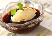 Кофейное желе имеет яркий горьковатый вкус, который изящно оттеняется нежным вкусом ванильного мороженого