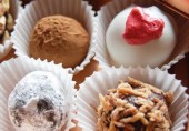 Трюфели из темного шоколада со сливками, кофейным ликером, корицей, кайенским перцем и ванилином. Можно покрыть конфеты чем угодно - сахарной пудрой, какао, растопленным шоколадом, рублеными орехами и даже морской солью.