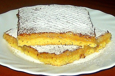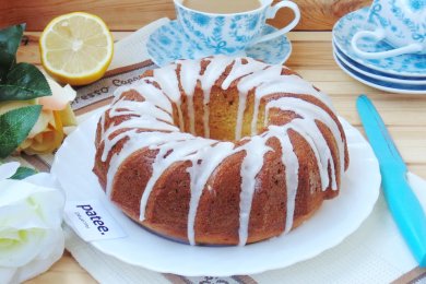 Кекс из цельнозерновой муки с медом, лимоном, йогуртом и семенами мака, покрытый сливочной глазурью.