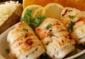 Маленькие итальянские рулетики из куриного филе с ветчиной и сыром, обжаренные в масле с луком и тушенные в белом вине.