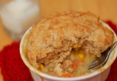 Пирог, начиненный курицей, морковью, горошком и кукурузой. Выпекается в горшочках или большой форме для выпечки.