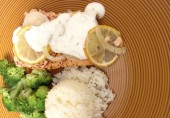 Быстрая в приготовлении тилапия с йогуртом, пармезаном и лимонным соком.