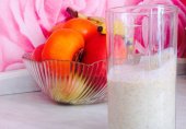 Освежающий напиток из бананов с йогуртом, молоком, арахисовым маслом и льняной мукой.