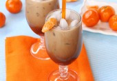 Потрясающее сочетание вкусов. Сладкий кофе с молоком и сливками. Подавайте со льдом и ломтиками мандарина.