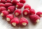 Свежая малина с начинкой из белого шоколада со взбитыми сливками. Украшайте ею сладкие пироги, торты, кексы и другие десерты.