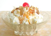 Ананасы, мандарины, кокос, и зефир с сладкими сливками