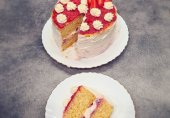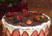 Очередно рецепт @darkzipНежные лимонные бисквитные коржи, сырная начинка с кусочками клубники и клубничное желе.