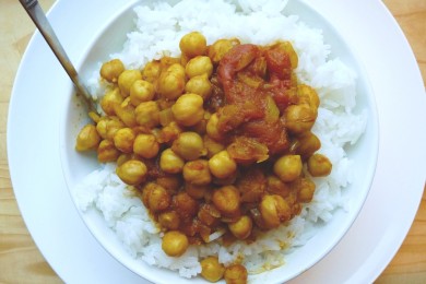 Индийское блюдо - рагу из нута с консервированными помидорами, перцем халапеньо и специями.