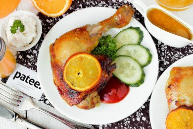 Голени индейки, запечённые в апельсиново-горчичном соусе