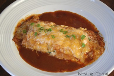 Энчилада с начинкой из приготовленного в медленноварке куриного филе с консервированной фасолью и сыром.