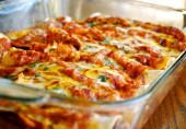 Мексиканская запеканка с курицей, кукурузой, сыром и соусом энчилада.