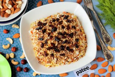 Домашняя гранола - это плющеные овсяные хлопья, орехи, сухофрукты и мед запеченные в духовке. Хрустящая, питательная, полезная и очень вкусная, более здоровую еду сложно придумать.